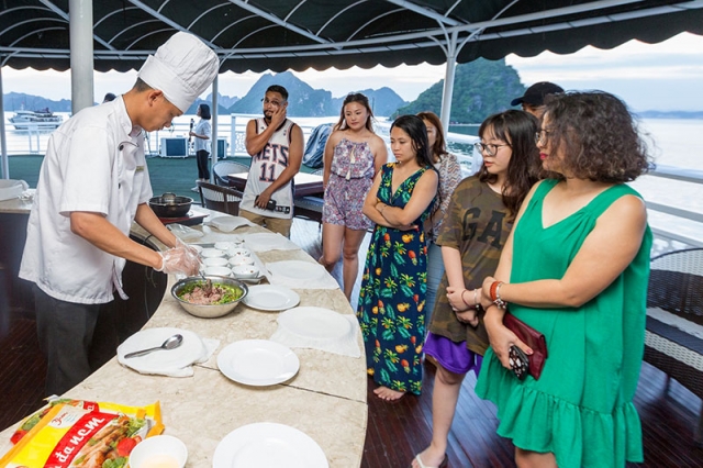 06:30 Welcome a new day with amazing dawn on the Legendary Gulf of Tonkin. Refresh your body & soul by a Tai-chi lesson on sundeck.