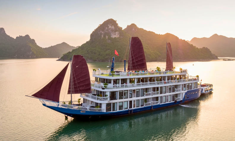 19:00 Savor deluxe dinner. Enjoy delicious local food prepared and served for you by our wonderful on-board catering staff, night view on Lan Ha Bay is incredible.